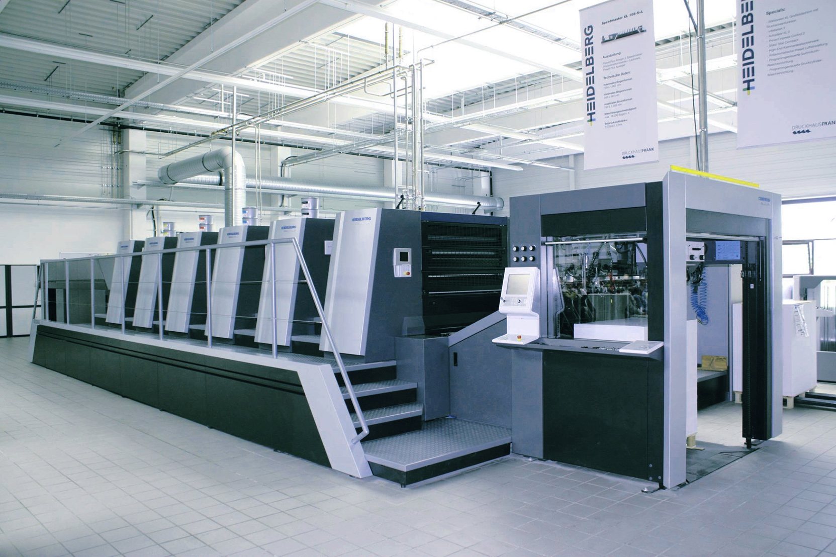 Nach erfolgreicher Installation druckt das Druckhaus Frank fortan auf seiner neuen 5-Farben+Lack HEIDELBERG Speedmaster XL-106.