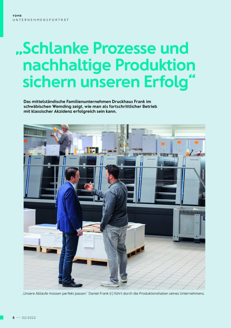 Im März 2022 besuchte uns im schwäbischen Wemding Herr Hosemann (Referent Öffentlichkeitsarbeit beim Verband Druck und Medien Bayern e.V.). Ziel des Besuches war, das Druckhaus Frank als Mitgliedsunternehmen im VDMB im Verbandsmagazin „NUTZEN“ vorzustellen.